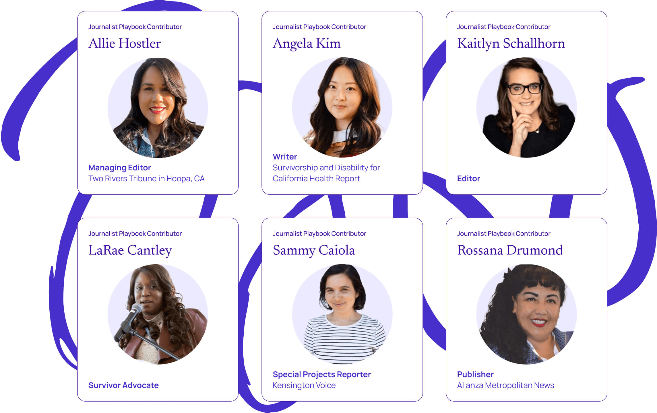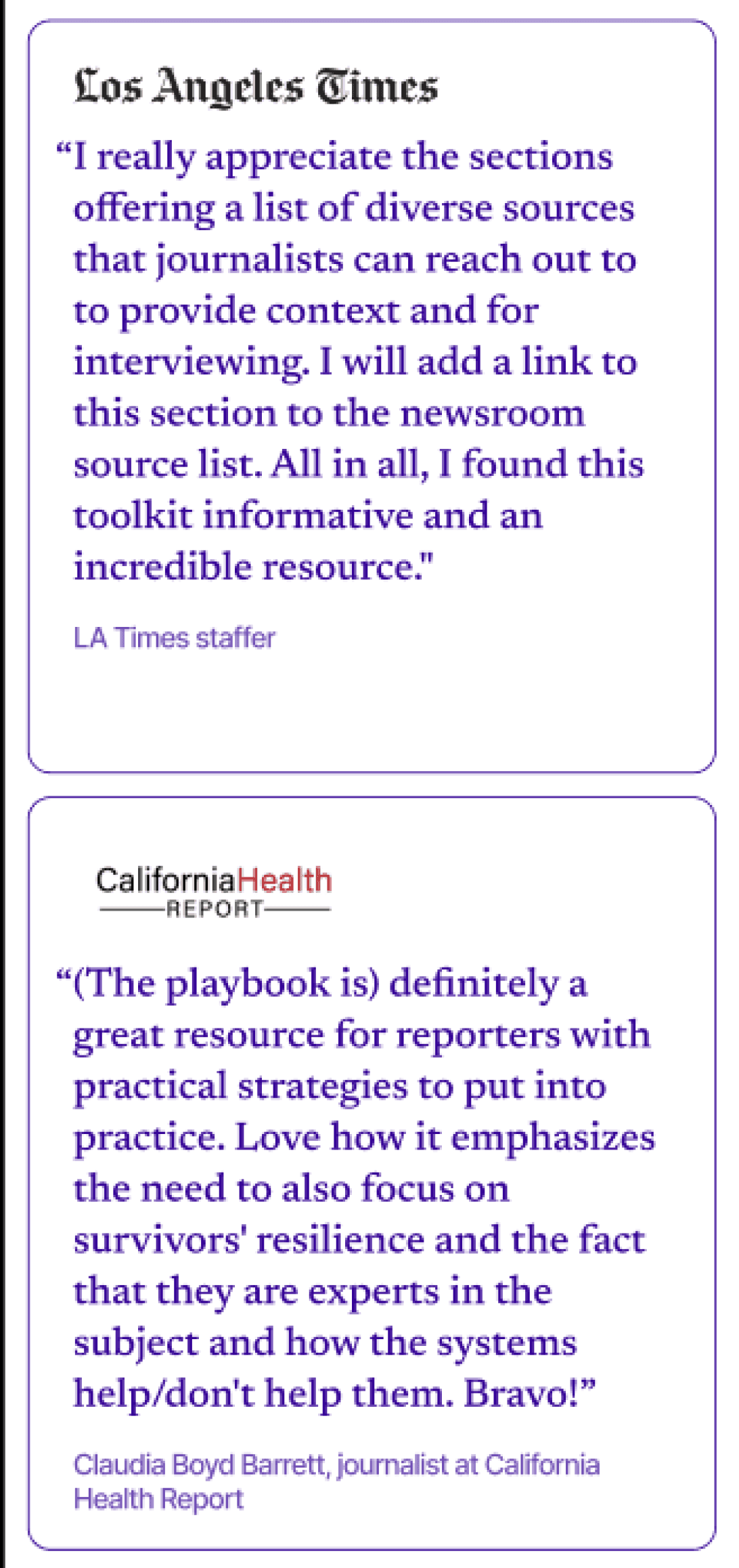 Working with the California Partnership to End Domestic Violence (CPEDV), we formed an advisory group of journalists, editors, survivors, and advocates to help shape the content of the playbook.